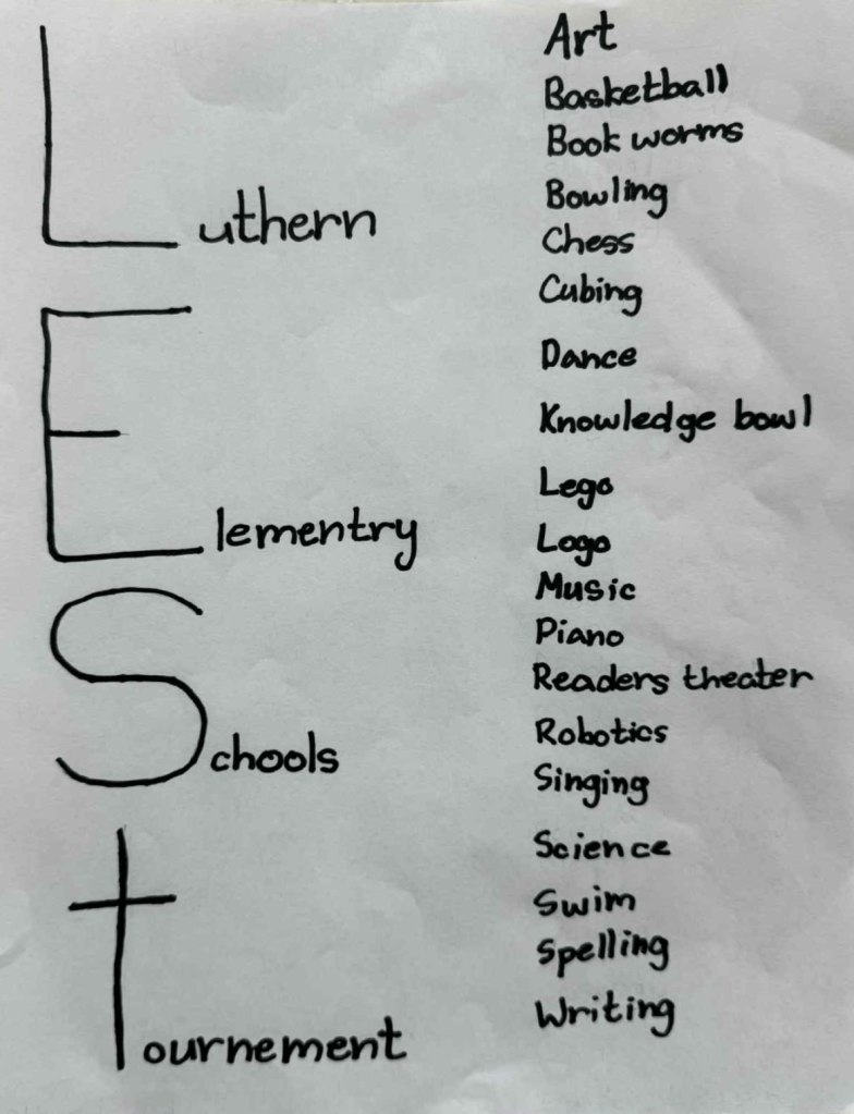 The LEST logo design was begun in 1989. Each school is limited to five entries for this event. One design will be chosen for the following year’s LEST Northwest and a brief presentation will be made at the awards ceremony. Recommendations are that the design is simple and that some religious wording and/or artistry be used in the entry. The design is to be done in pencil or black ink on white 8 ½ x 11 inch paper. Logo designs should be submitted with the art entries. LEST Northwest reserves the right to make any changes or modifications to the design chosen for the logo.