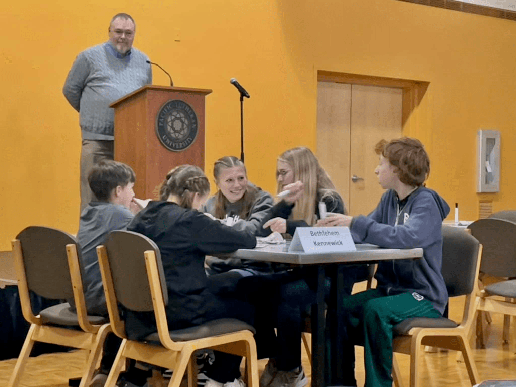 - Each team will have an appointed captain who will act as the writer for each answer. The team will sit around a table, with the captain seated in a location where their answer may be easily shown to the moderator. This will be clarified at the competition, as teams are seated. If the team’s agreed-upon answer is written on a board other than the team captain’s, he/she should simply hold up that board.